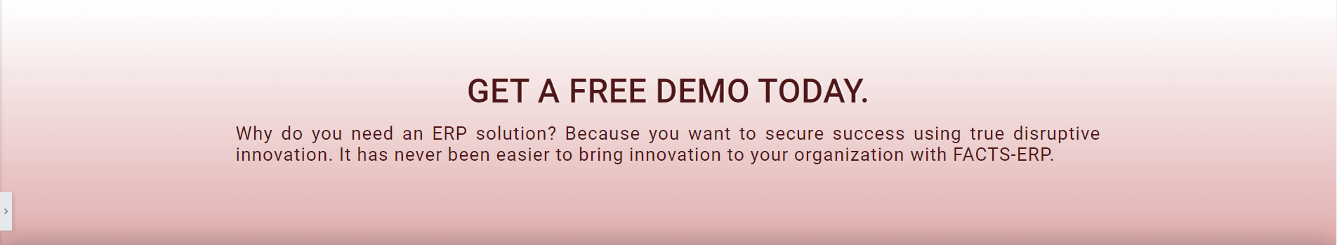 FACTS Computer Software House L.L.C. is a leading software solutions provider based in Dubai with a commendable presence in the Middle East. We aim at empowering enterprises with our cutting-edge technology solutions. FACTS has been at the forefront for more than a decade providing the latest and the best ERP and HR Solutions to leading organizations and corporates throughout the industries like General trading, Healthcare, Manufacturing, Hospitality, Civil contracting, Engineering, Logistics, Real estate, FMCG, Textile, Retail, and more.